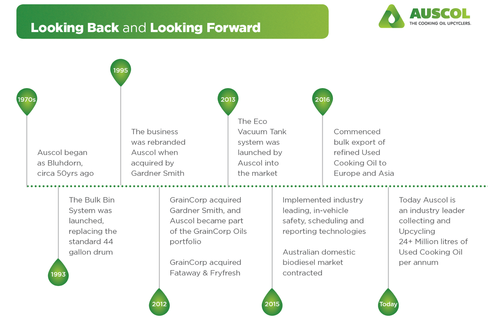 Auscol continues to be recognised as one of Australia’s leading, longest running, national waste oil collection services.